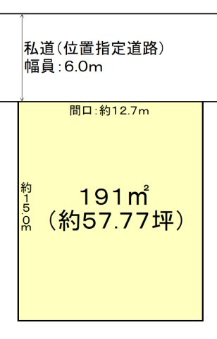 | 接道状況 | 一方 (北側 私道6.0m 間口12.7m) | ||